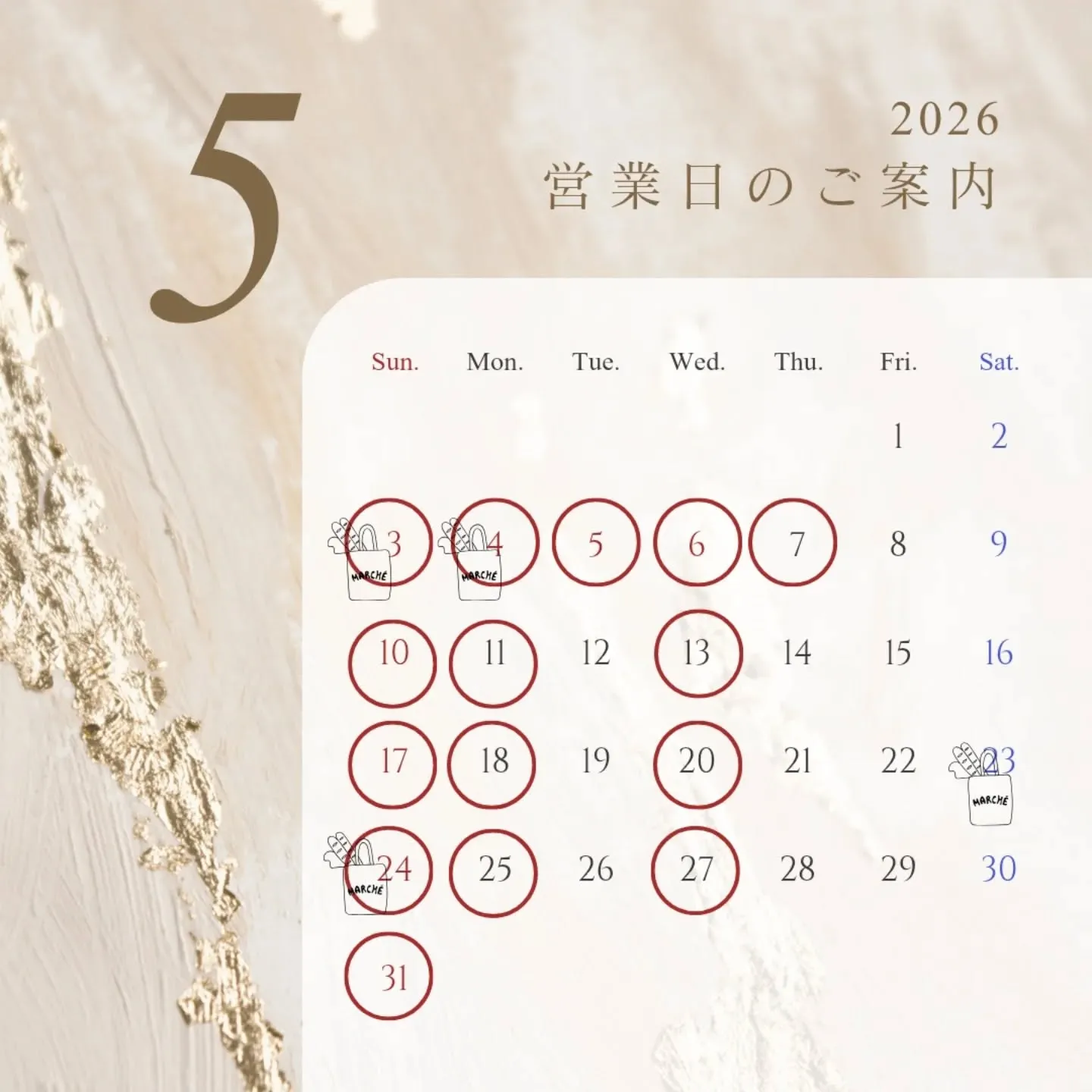 【5月営業日のお知らせ🌿】